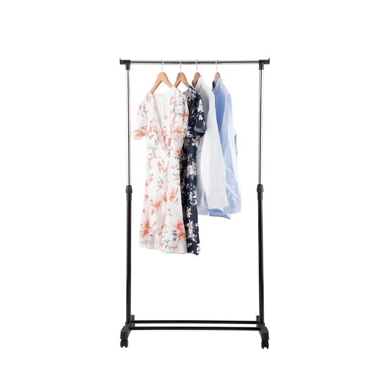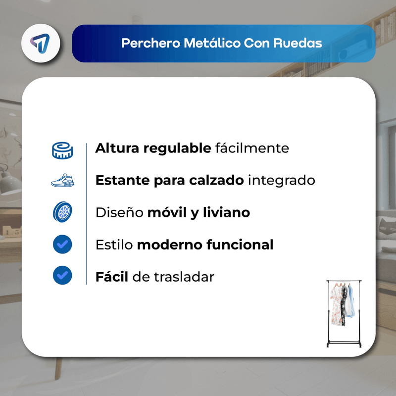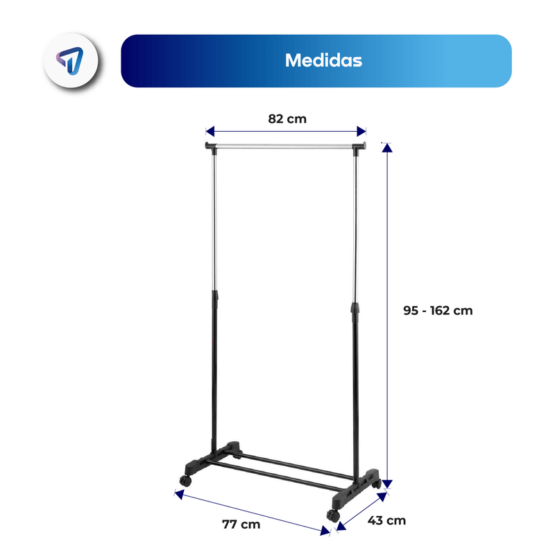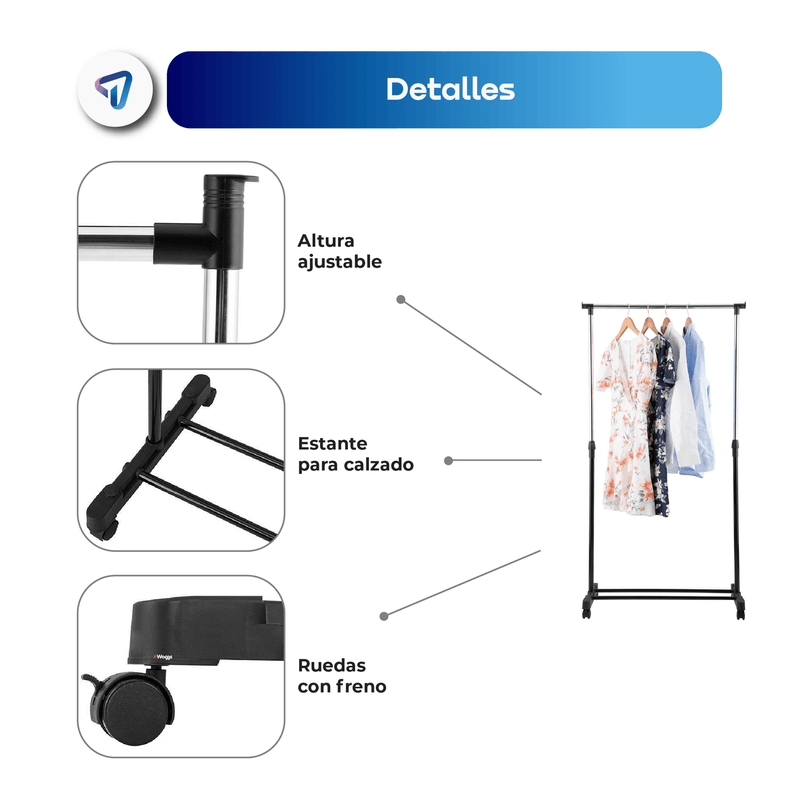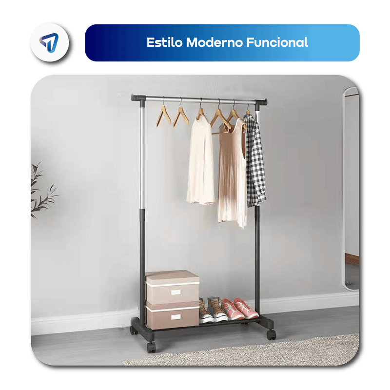 Perchero Organizador WAGGS PERE02, práctico y elegante para mantener ropa y accesorios siempre en orden. Su altura regulable de 95 a 162 cm permite colgar desde camisas hasta camperas, mientras que las ruedas giratorias con freno ofrecen movilidad segura y sencilla. Incluye estante inferior para zapatos o cajas, maximizando el espacio de guardado. Con diseño moderno, estructura metálica liviana y desmontable, es ideal para dormitorios, vestidores, oficinas o ambientes reducidos. Dimensiones: 82 × 43 × (95–162) cm. Capacidad: hasta 20 kg. Un perchero versátil que combina organización, estilo y practicidad.
