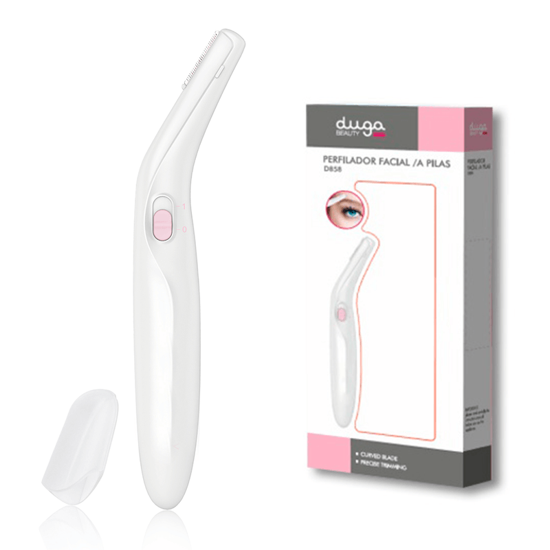 Perfilador facial a pila (AAA) con cuchilla curva y precisión de corte. Hoja segura. no daña la piel. Hoja curva. se ajusta al contorno del cuerpo. Recorta las cejas con precisión. Cuchilla de acero inoxidable. durable. Peine doble adicional para un corte de cabello preciso. Incluye un cepillo de limpieza.