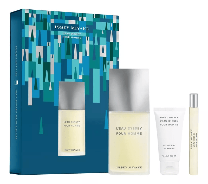 El set incluye: Fragancia masculina L'Eau D'Issey Pour Homme EDT 125ml + Shower Gel 50ml + Travel Size 10ml.