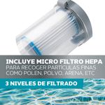 Su potente rendimiento ofrece una limpieza eficiente con un flujo de hasta 50 L/min en su modo máximo, mientras que su batería de 2000mAh te brinda hasta 60 minutos de uso continuo.