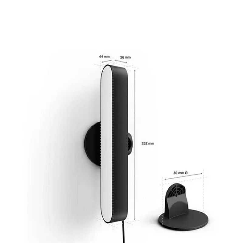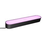 Crea un amplio efecto de iluminación con la barra de luces Hue Play de diseño estilizado en color negro. Se suministra en un pack de dos barras de luces y una fuente de alimentación que permite conectar hasta tres barras de luces. Se puede posar en el suelo en vertical u horizontal o instalar en la parte posterior del televisor con los soportes incluidos.