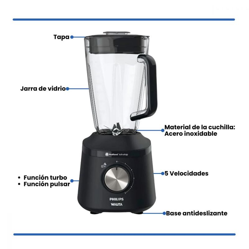 Base antideslizante: Mayor estabilidad al licuar.