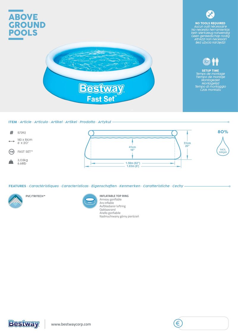 Contenido: 1 piscina, 1 parche de reparación