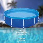 Cuenta con partes plásticas de alta resistencia que reducen posibles rayones y marcas en el piso, cintas de PVC fijadas al cuerpo, brindando mayor estabilidad estructural a la piscina, además de la triple capa de su lona (dos láminas de PVC con trama de poliéster entre ellos) que garantiza la durabilidad. Su estructura es de acero con recubrimiento en polvo epoxi y partes plásticas en polipropileno, siendo de fácil montaje y mantenimiento. También dispone de válvula de vaciado y entrada para filtro, facilitando su limpieza.