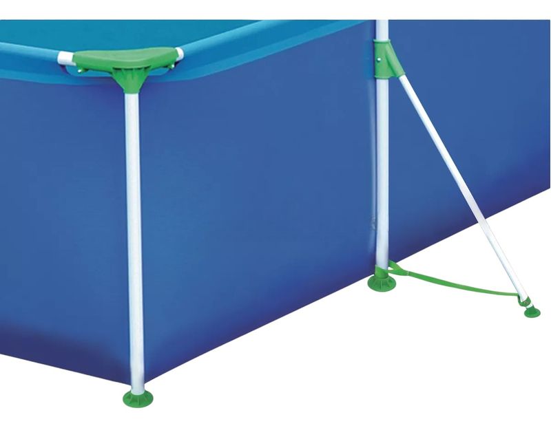 Está desarrollada con caños de acero totalmente firmes y resistentes a los impactos. Lona de PVC triple capa: dos láminas de PVC más una capa intermedia de poliéster. Además cuenta con una válvula para la colocación de un filtro, lo que facilita el proceso de mantenimiento. Con esquineros plásticos y punteros de goma que ofrecen mayor estabilidad.