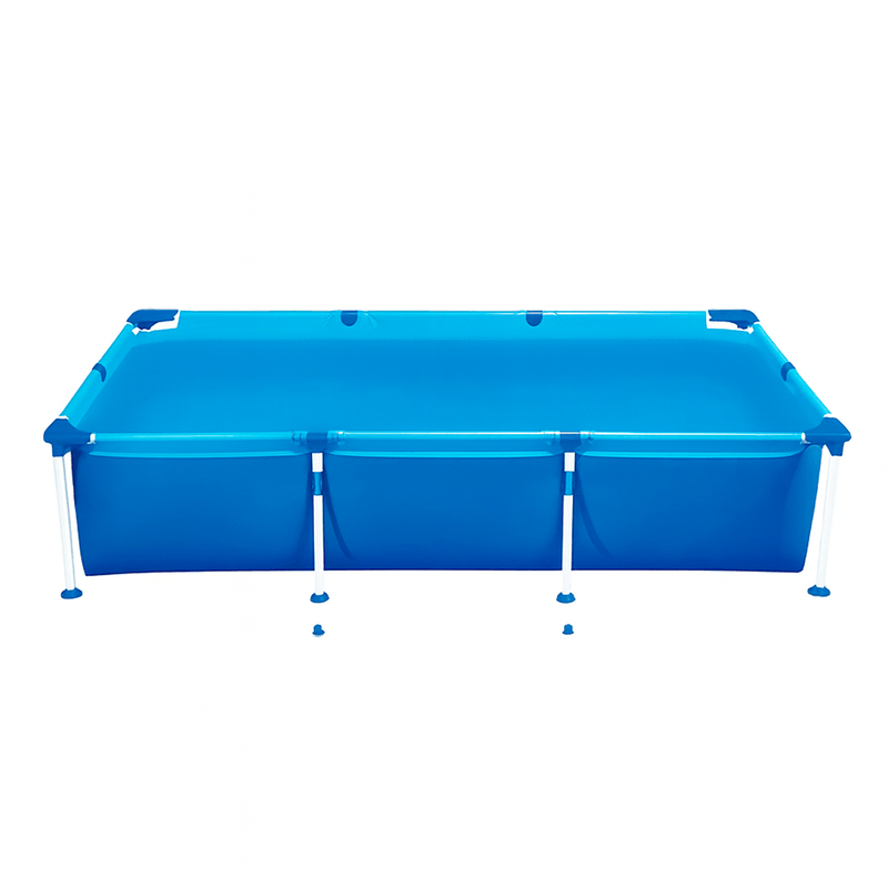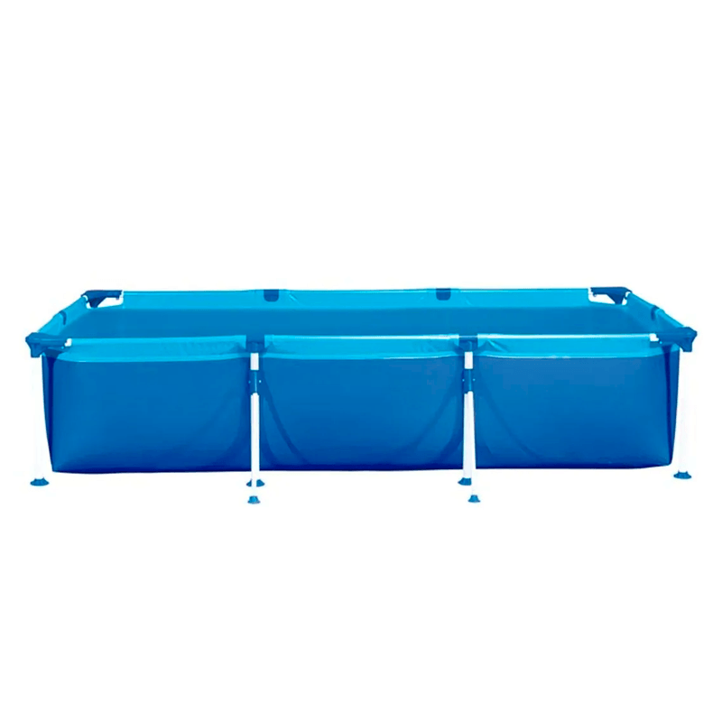 Está desarrollada con caños de acero totalmente firmes y resistentes a los impactos. Lona de PVC triple capa: dos láminas de PVC más una capa intermedia de poliéster. Además cuenta con una válvula para la colocación de un filtro, lo que facilita el proceso de mantenimiento. Con esquineros plásticos y punteros de goma que ofrecen mayor estabilidad.
