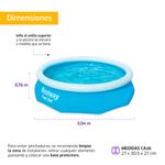 Seleccione una superficie nivelada, infle el anillo superior y la piscina se elevará a medida que se llena de agua.
