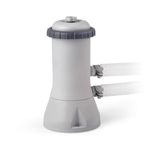 Incluye bomba filtrante de cartucho tipo A con capacidad de filtración de 3.785 litros/hora, escalera de seguridad, tapiz y cobertor.