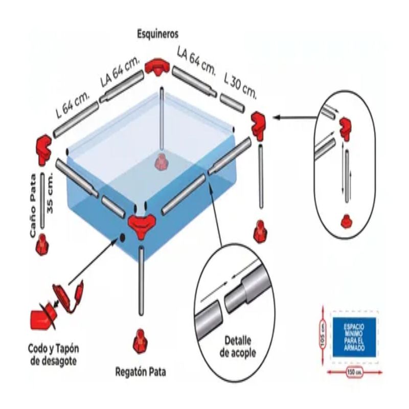 Pileta estructural desarmable confeccionada en lona de tejido poliéster recubierto con PVC.