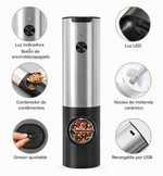 Moderniza tu cocina con este pimentero eléctrico de diseño elegante, fabricado en acero inoxidable y acabado negro, pensado para ofrecer comodidad, precisión y estilo en cada uso.