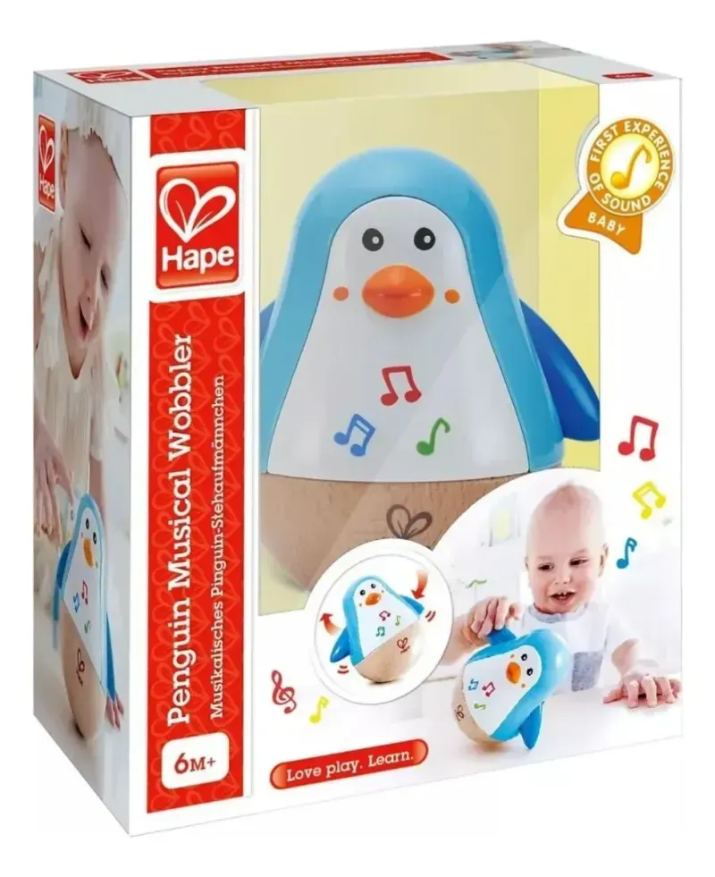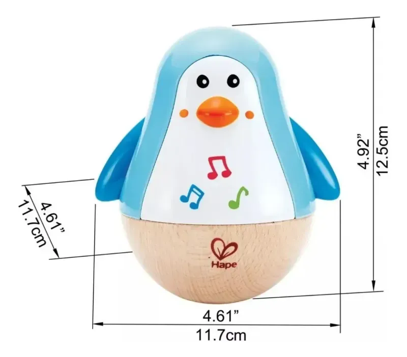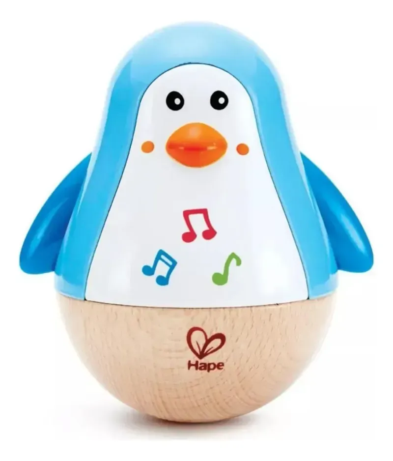 Este Pingüino con melodía es un excelente compañero de juegos para los más pequeños. Pingüino de madera con una base redondeada para girar.