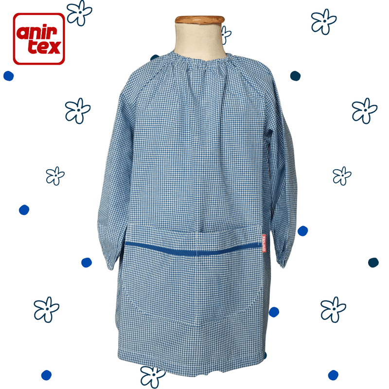 Pintorcito de Tareas para Jardín de Infantes y maternales, excelente durabilidad de materiales y costuras. Este modelo es amplio y permite ser colocado sobre otras prendas, super apto para jugar con libertad de movimientos. Su elástico embutido en cuello y puños, permite ser sacado sin desprender los broches. Tiene un amplio bolsillo delantero dividido en dos por una costura que no permite que se desboque. La vista trasera está reforzada con entretela antidesgarros y tiene tres broches. El set está acompañado por bolsa con tira o mochila con cordones de tamaño grande, entra todo (37 x 35 cm) Mantel (tamaño A4) y Servilleta (24 x 24 cm). En ANIRTEX nos dedicamos hace más de 18 años a acompañarte en la hermosa etapa de escolaridad de tu hijo. Contá con nosotros con la tranquilidad de estar eligiendo prendas amigables con su piel y asegurarte durabilidad textil y de tal manera mayor ahorro.