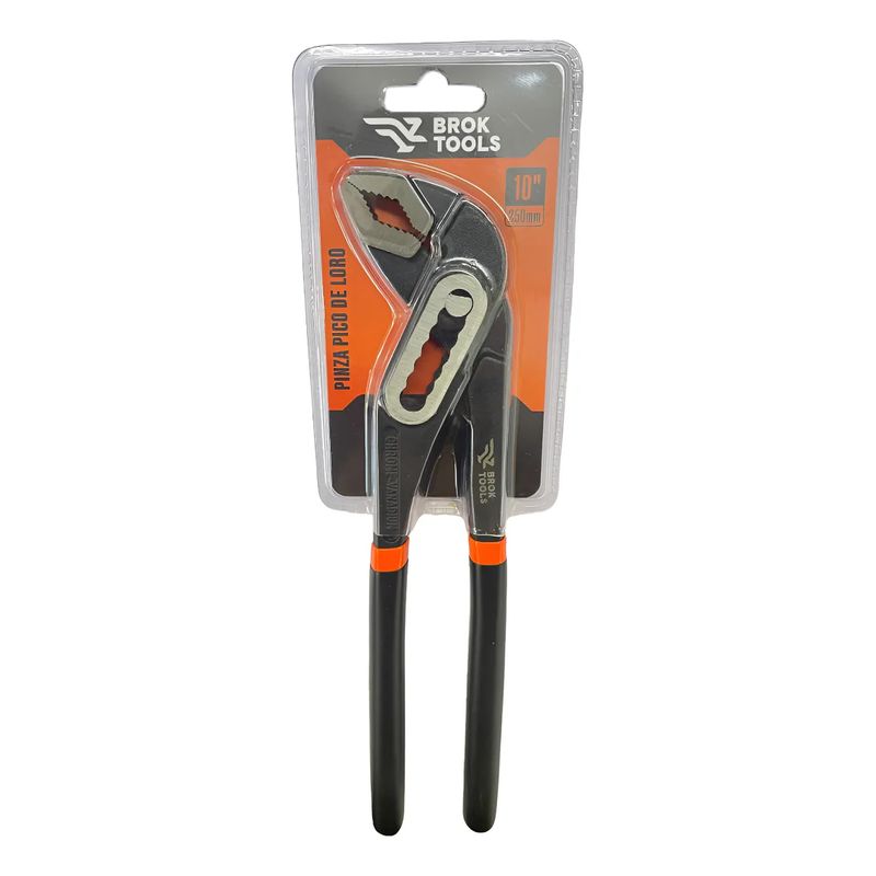 La pinza pico de loro Broktools de 10 pulgadas (250 mm) es una herramienta esencial para trabajos de agarre, ajuste y sujeción en tareas mecánicas, plomería, electricidad y más. Su estructura resistente y diseño ergonómico permiten un uso cómodo, seguro y eficiente.