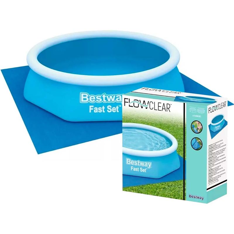El piso para piletas de lona o inflables está diseñada para proteger tu pileta del desgaste provocado por piedritas, ramitas puntiagudas y otros residuos del terreno. Solo tenés que colocar la cubierta para suelo en el lugar donde vas a instalar tu pileta Bestway.