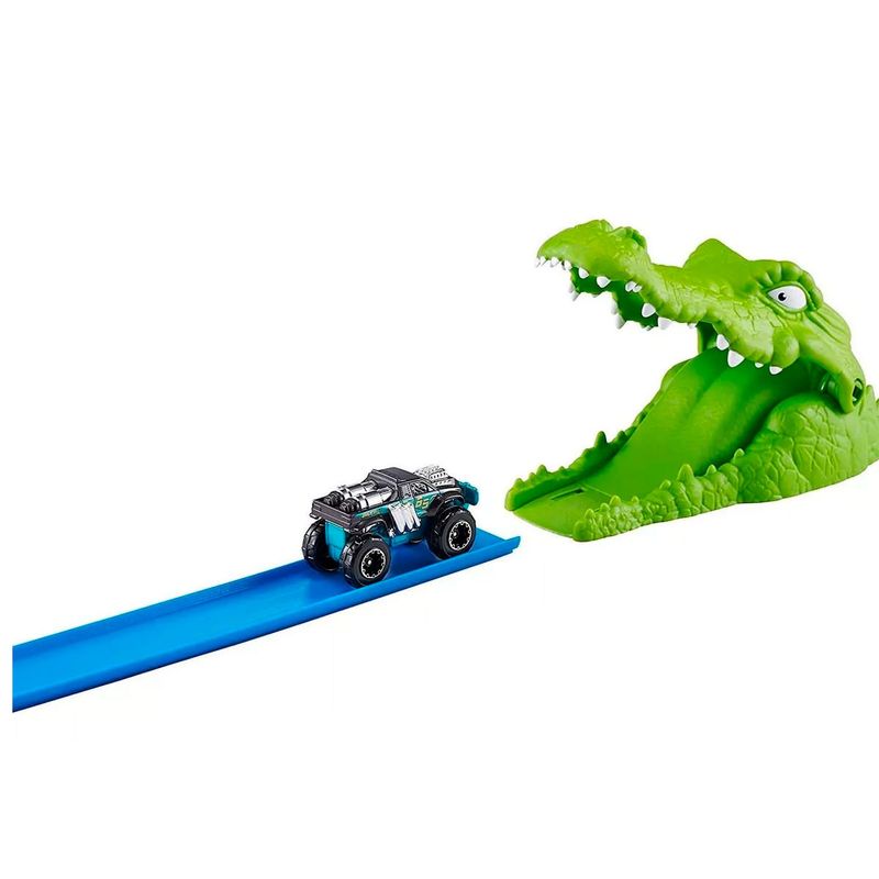 ¡Desafía tus habilidades y enfrenta al feroz cocodrilo con esta emocionante pista de autos!