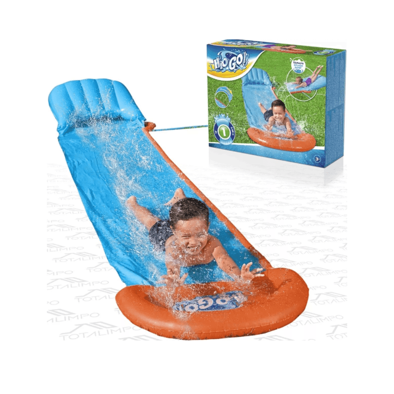 La pista deslizable con tobogán de 4,88 m es perfecto para pruebas de velocidad en solitario o turnos con amigos. Los embudos de agua al final de la piscina aterrizan con un gran chapoteo en la línea de meta. Los rociadores incorporados están especialmente diseñados para cubrir de manera más eficiente y proporcionar un efecto de cascada, manteniendo la pista resbaladiza.
