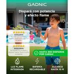 Simula una llama luminosa al disparar, brindando un efecto visual divertido y único.