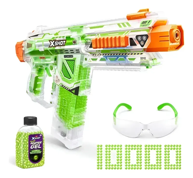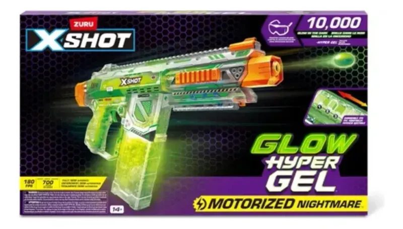 PISTOLA GLOW HYPER GEL NIGHTSTRIKE BRILLA EN LA OSCURIDAD CON 10.000 BOLITAS DE HYPER GEL Diviértete con esta novedosa Pistola de Hyper Gel que puede disparar perdigones de gel a 60 metros por segundo.