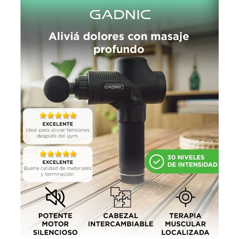 Esta Pistola Masajeadora Gadnic es ideal para la recuperación muscular luego de hacer deporte, rehabilitación después de una lesión deportiva o dolores musculares.