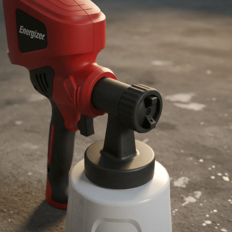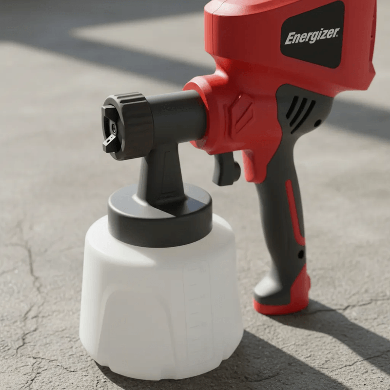 La pistola eléctrica Energizer EZ400PG es práctica y simple para uso en servicios residenciales de mayor exigencia. Con una Potencia de 400w. Y presión de pulverización de 0.1-0.2 bar. Con una boquilla de 2.5 mm. Y un caudal de 700ml/min. Con capacidad de 800ml. Con un diseño compacto y ligero permite regular el flujo.