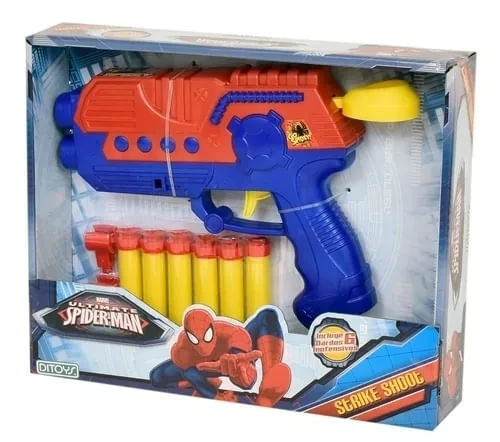 Con un diseño inspirado en el traje icónico de Spiderman y una precisión excepcional, la Pistola Spiderman Strike Shoot 2006 garantiza emocionantes aventuras para niños y niñas de todas las edades. ¡Lanza tus dardos con destreza y defiende la ciudad como un auténtico héroe!