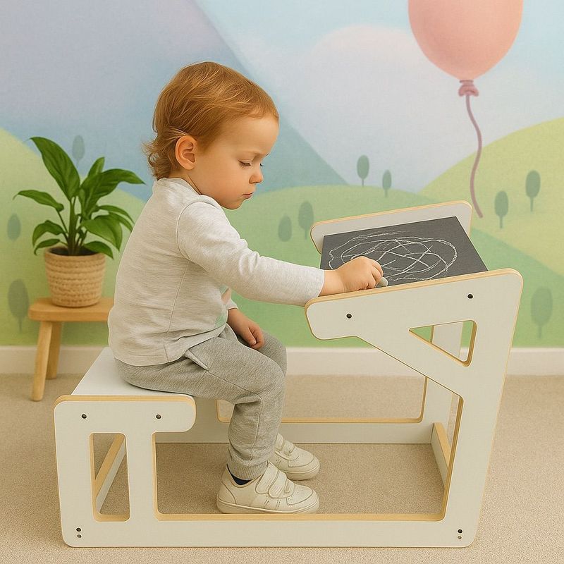 Fabricada en melamina, ofrece durabilidad y facilidad en la limpieza, perfecta para cualquier entorno infantil. Incluye accesorios como tiza, lo que permite a los niños expresarse artísticamente y desarrollar habilidades motrices mientras aprenden a dibujar y escribir.