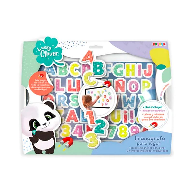Tablero magnético con encastre de goma EVA de números y letras. 48 piezas. Este juego tiene iman en toda la superficie de apoyo y nunca se desprende.