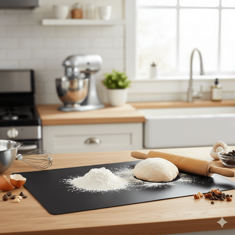 - Superficie de Trabajo: Puede utilizarse sobre la mesada para amasar o trabajar chocolate y caramelo, ya que nada se queda pegado.