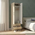Interior: Espacio para colgado con barral plástico y 2 cajones con correderas metálicas, ideales para organizar tu ropa y accesorios.