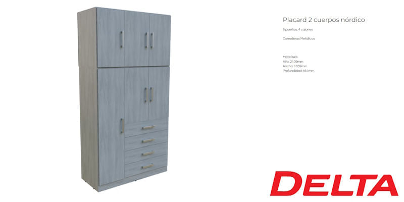 Placard Nordica Orlandi 2 Cuerpos 6 Puertas y 4 Cajones Venecia (3583)
