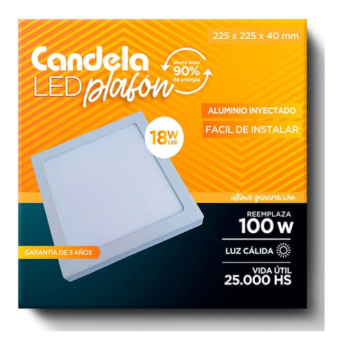 Plafón blanco con base cuadrado de fácil instalación, marco de aluminio inyectado.