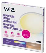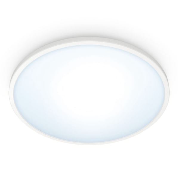 Agrega luz blanca cálida o fría personalizable a tus espacios vitales con la iluminación de techo inteligente WiZ Super Slim.
