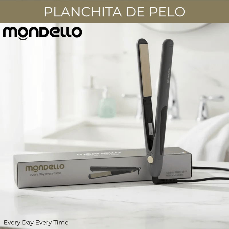 Esta Planchita Modelo MND-1607 de la Marca MONDELLO ha sido diseñada con un toque moderno, combinando el Gris y Dorado que, sumado a su luz Led indicadora y su potencia, te darán la herramienta de uso diario sin salir de tu casa.