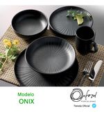 Inspirándonos en la vertiente del diseño biofílico que busca conectar a las personas con los beneficios de la presencia de la naturaleza en los ambientes y en la creación de productos, presentamos la colección Flat. Con inspiración natural, traemos sus elementos más representativos para un día a día más tranquilo y lleno de bienestar. Los platos de la línea Flat ofrecen una mayor área de uso, lo que los convierte en una opción adecuada para emplatados creativos, además de brindar mayor comodidad a la hora de utilizarlos. Con formas rectas y funcionales, las piezas de la línea son fáciles de almacenar incluso en los armarios más compactos. Inspirada en la naturaleza, la decoración Onyx tiene un acabado satinado negro, al igual que la piedra que da nombre a la decoración. Líneas en alto relieve van desde el centro de las placas hasta los extremos, simbolizando las ramificaciones presentes en la piedra conocida por proteger y eliminar las energías negativas. En esta opción el plato hondo se vende individualmente.
