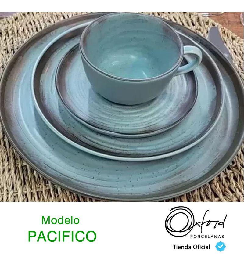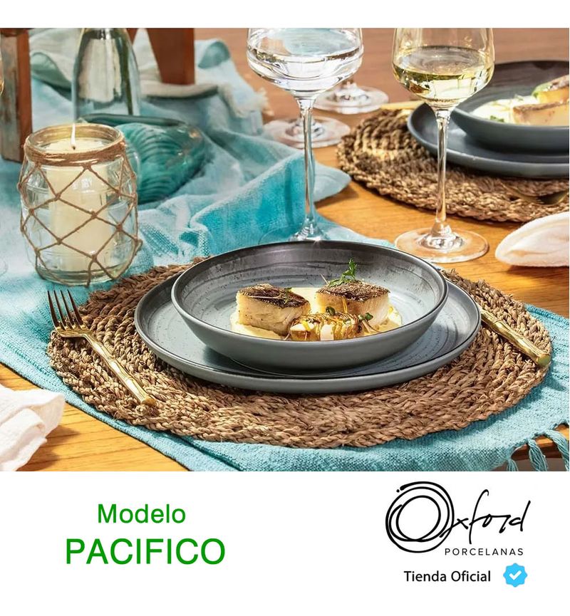 Los platos de la línea Flat ofrecen una mayor área de uso, lo que los convierte en una opción adecuada para emplatados creativos, además de brindar mayor comodidad a la hora de utilizarlos. Con formas rectas y funcionales, las piezas de la línea son fáciles de almacenar incluso en los armarios más compactos. Inspirada en la naturaleza, la decoración Pacific tiene un acabado satinado, azul en el centro y bordes negros degradados. El alto relieve se aplica en toda la placa, imitando el movimiento del agua cuando un objeto llega a su superficie, inspirando paz y serenidad.