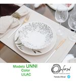 La colección Unni Lilac tiene como protagonista la lavanda, una planta que cada vez se ha ganado un lugar más en la decoración, en la industria cosmética, en productos terapéuticos y ahora también en las mesas. ¡El color lila, presente en sus flores, aporta toda la delicadeza y buenas sensaciones a los platos! La copa de color liso añade un toque más contemporáneo a la colección.