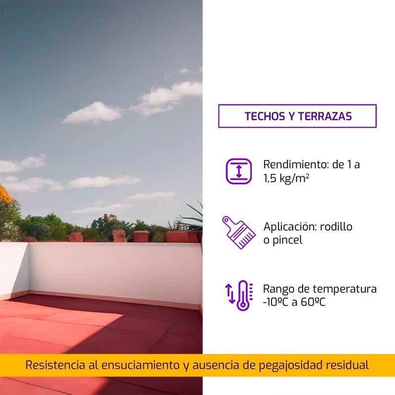 Impermeabilizante acrílico con fibras incorporadas en base acuosa formulado en base a polímeros reticulantes. Aplicado, forma una membrana armada de gran elasticidad y gran resistencia a la abrasión, resistente a los agentes climáticos cumple eficientemente con la función de impermeabilizar techos. Máxima elasticidad en un amplio rango de temperaturas (-15°C a 60°C).Curado por rayos ultravioletas, le confiere máxima resistencia al ensuciamiento y ausencia de pegajosidad residual manteniendo su elasticidad por más tiempo.