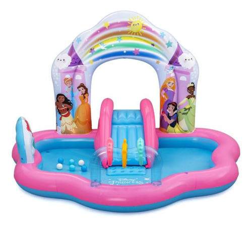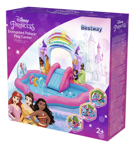 Descubre el Playcenter Bestway Princesas Disney, un centro de juegos inflable diseñado para brindar horas de diversión a los más pequeños. Con una capacidad de agua de 160 litros, este atractivo modelo en forma de estrella es ideal para niños de 2 a 4 años, permitiendo que dos pequeños jueguen al mismo tiempo.
