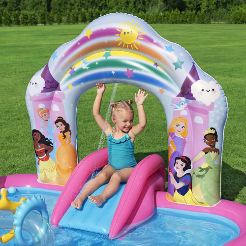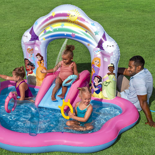 El diseño encantador de las Princesas Disney hará que cada día de juego sea una aventura mágica. Equipado con un tobogán y un pulverizador de agua, este playcenter garantiza risas y refrescantes chapuzones en los días soleados.