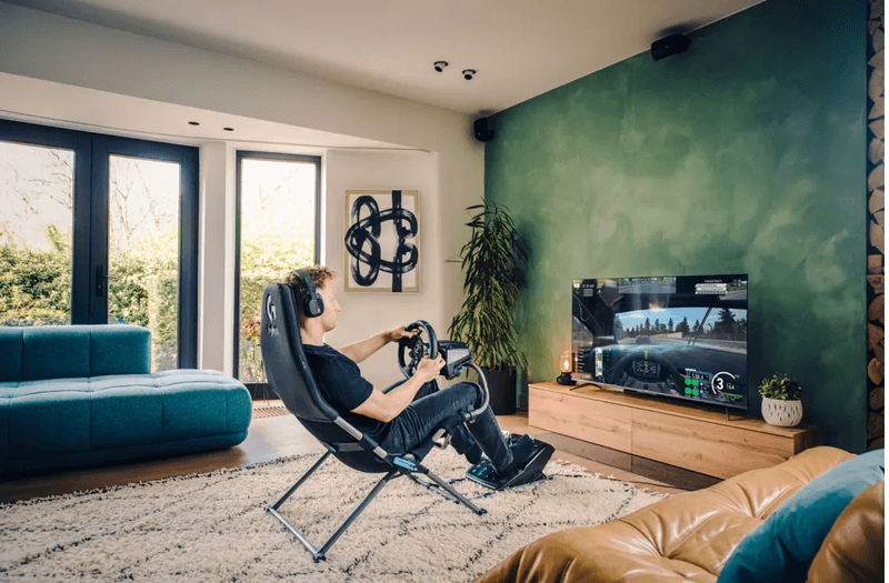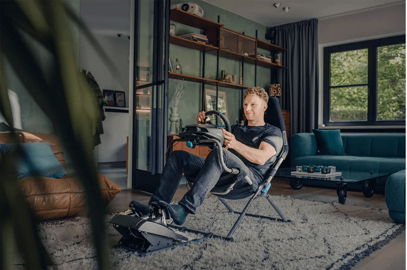 El Playseat Challenge X cuenta con un diseño plegable patentado, que permite su instalación o almacenamiento en solo 10 segundos, incluso con el volante y los pedales colocados.