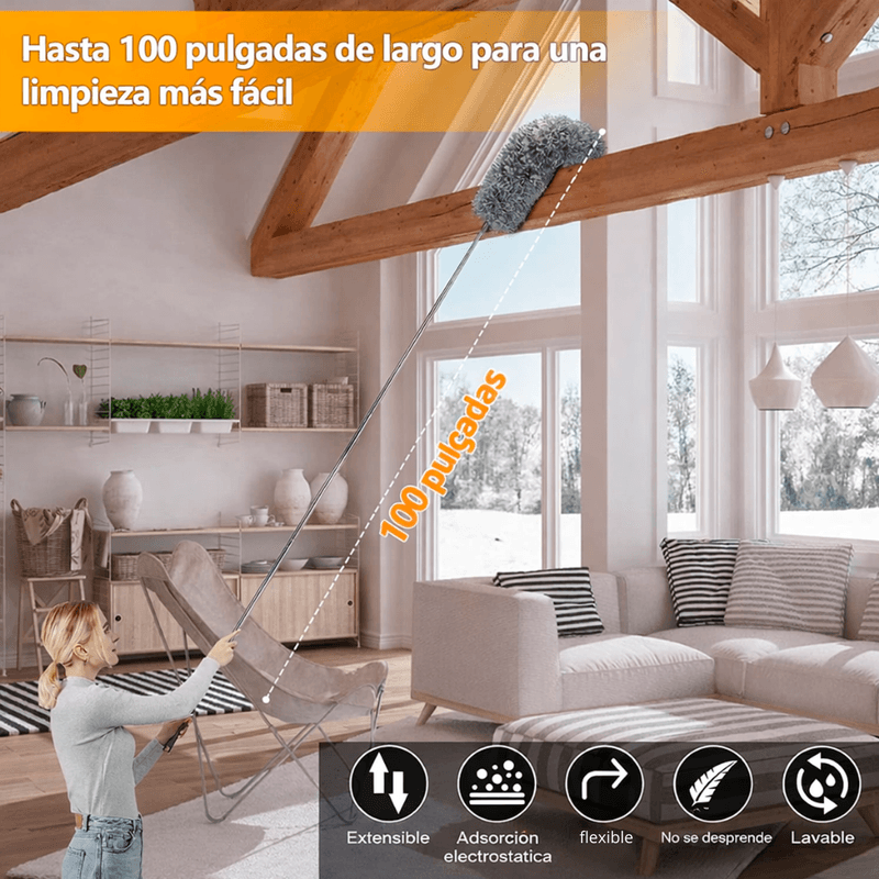 Ideal tanto para uso doméstico como profesional, este plumero combina alcance, versatilidad y durabilidad, convirtiéndose en una herramienta indispensable para mantener los espacios limpios con el máximo confort y eficiencia.
