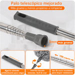El diseño liviano y ergonómico asegura un manejo cómodo y estable durante el uso, mientras que su sistema telescópico resistente proporciona firmeza y control en cada extensión. Los cabezales son fáciles de colocar y reemplazar, optimizando el tiempo de limpieza.
