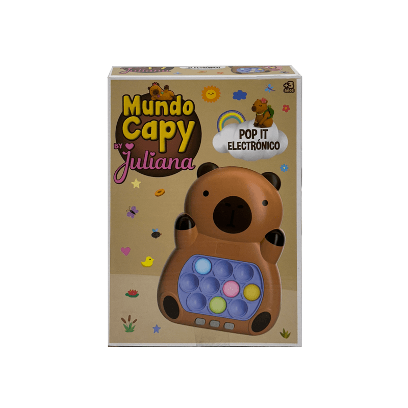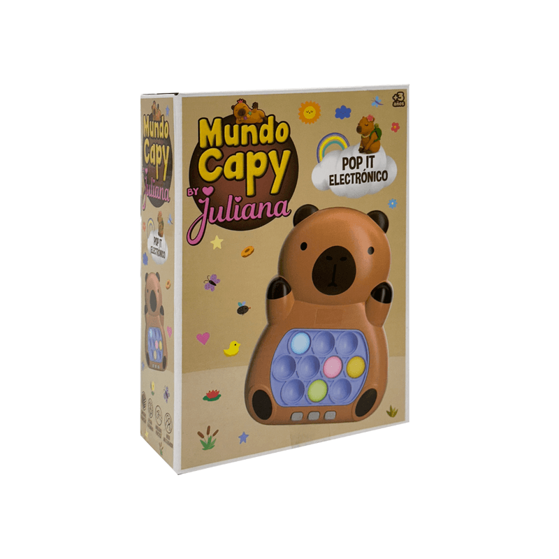 ¡Descubrí la nueva forma de jugar con este divertido Pop It electrónico de Mundo Capy! Es el juguete ideal para esas tardes de aburrimiento o para un momento de relax. Con sus luces y sonidos, este pop it eleva la experiencia del juego, desafiando tus reflejos y tu destreza. ¡Un juego perfecto para toda la familia, que nunca querrás dejar de presionar!
