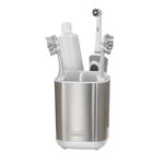 Este compacto porta cepillos de dientes se divide en diferentes secciones para proporcionar un almacenamiento organizado para una variedad de artículos de cuidado bucal, como cepillos de dientes manuales o eléctricos y tubos de pasta dental.
