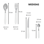 (para 6 personas: cuchara, cucharita, cuchillo, tenedor).