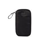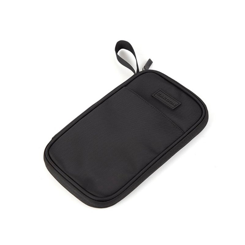 Modelo Porta Pasaporte Ezeiza: Porta pasaporte confeccionado en Polyester con cierre en tono en todo su contorno y cabezal metálico color negro. Interior con 13 espacios ideal para tarjetas o credenciales, más 3 solapas para documentación varia (dos de ellas con red) y, un bolsillo del largo total con cierre independiente ideal para guardado de dinero o documentación importante. Cuenta con un espacio para guardar un bolígrafo. Bolsillo externo frontal sin cierre y correa de 10 cm para facilitar el agarre. Dimensiones: 26 x 13 x 2,5 cm (Alto x Longitud x Ancho). Cardon.