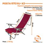 Abierta: Alto total 81 cm - Altura del piso al asiento 22,5 cm - Respaldo: Altura 72 cm - Ancho 50,5 cm - Asiento: Ancho 47 cm - Largo 45 cm.