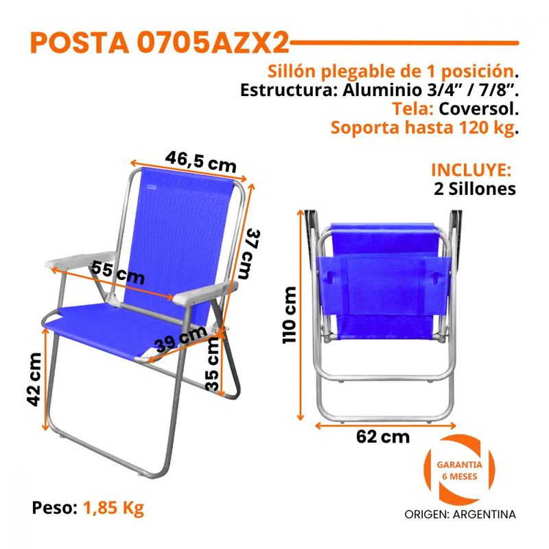 Abierta: Alto total 79 cm - Altura del piso al asiento 35/42 cm - Ancho entre reposabrazos 55 cm - Respaldo: Altura 37 cm - Asiento: Ancho 46,5 cm - Largo 39 cm.