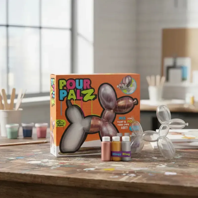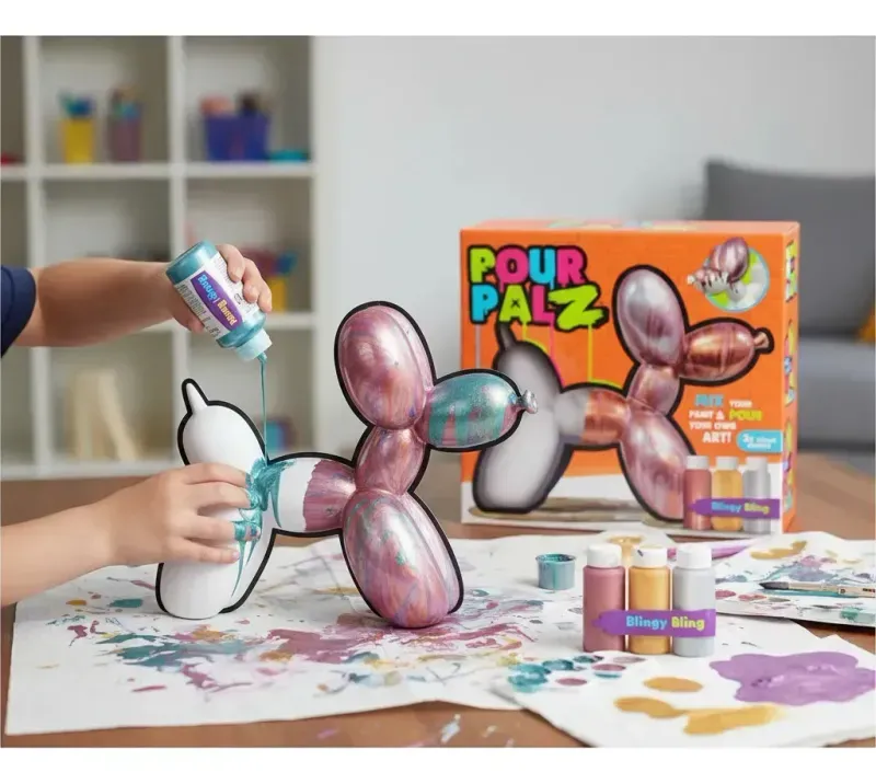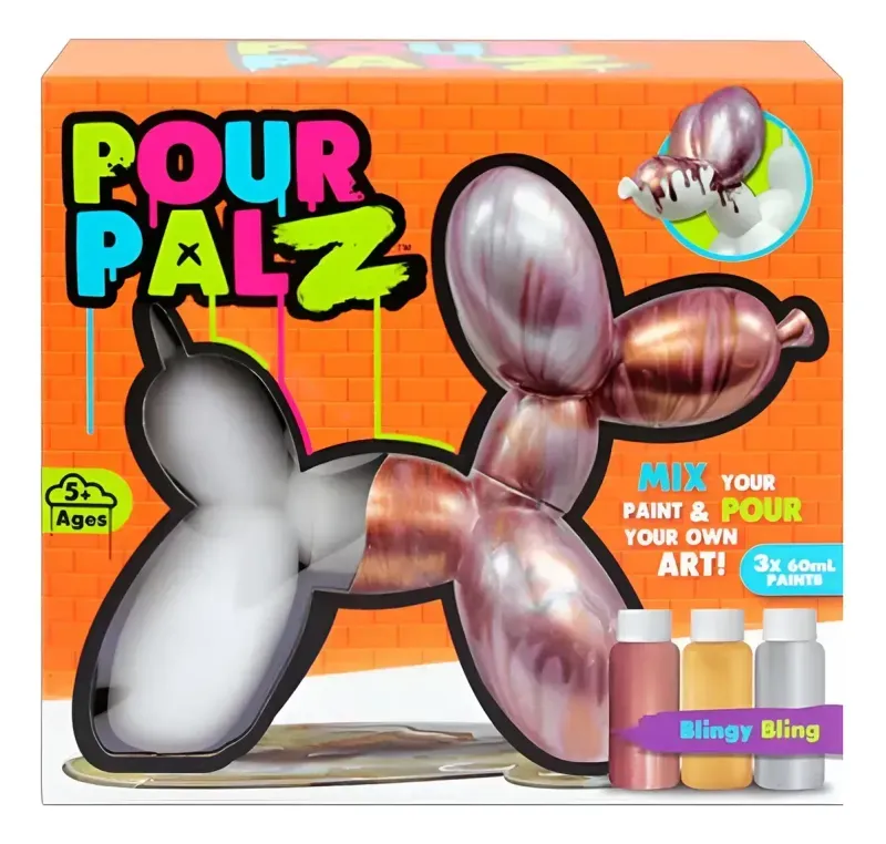 El Perrito Pour Palz es el kit perfecto para decorar y pintar, ideal para desarrollar habilidades manuales y artísticas. Con instrucciones sencillas, los niños pueden transformar fácilmente en un amigo colorido.