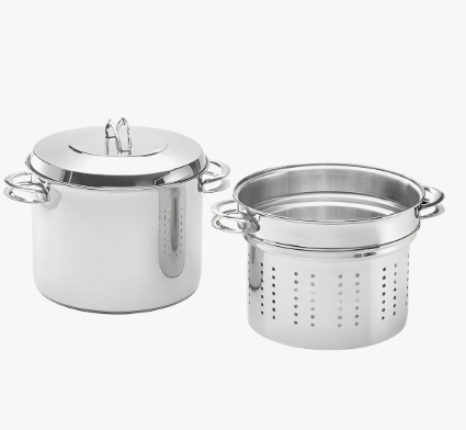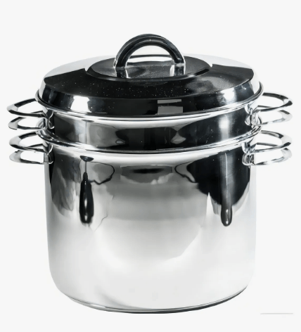 -Componentes del Set: Olla alta, colador vaporizador interno y tapa de acero